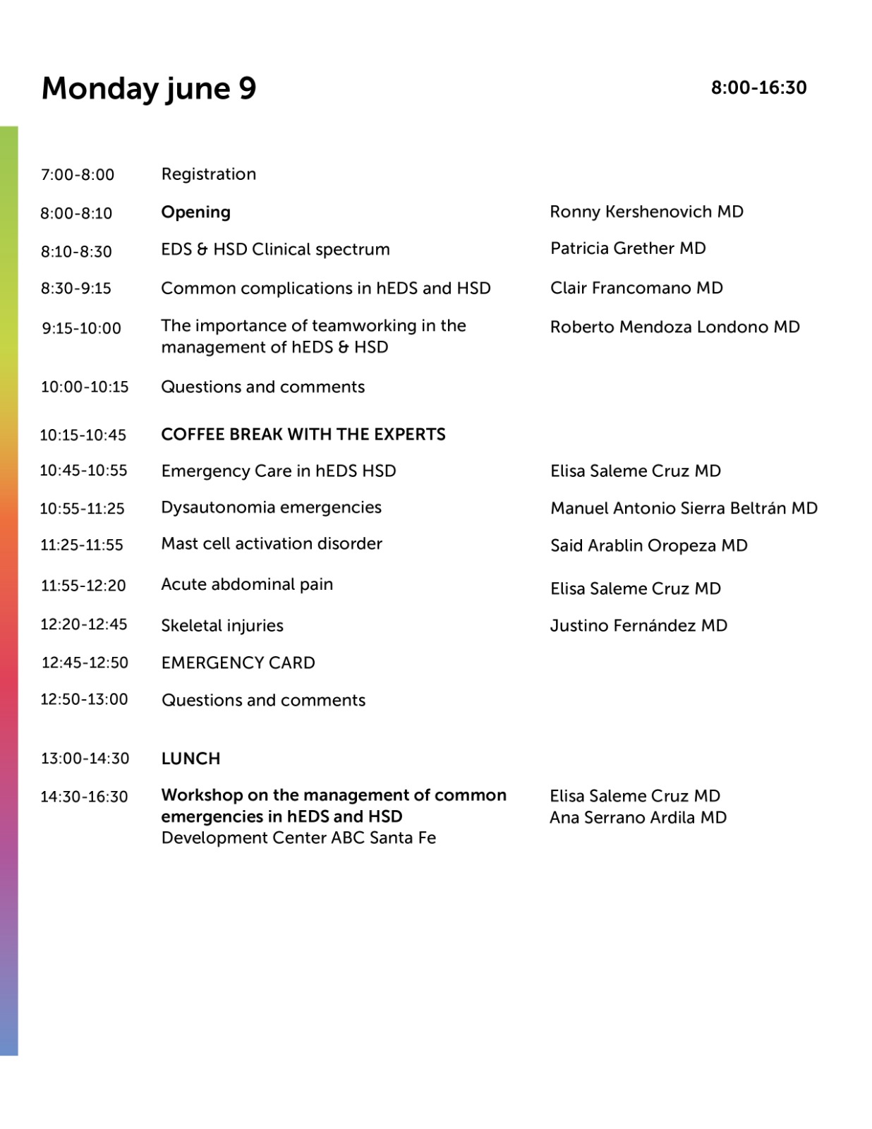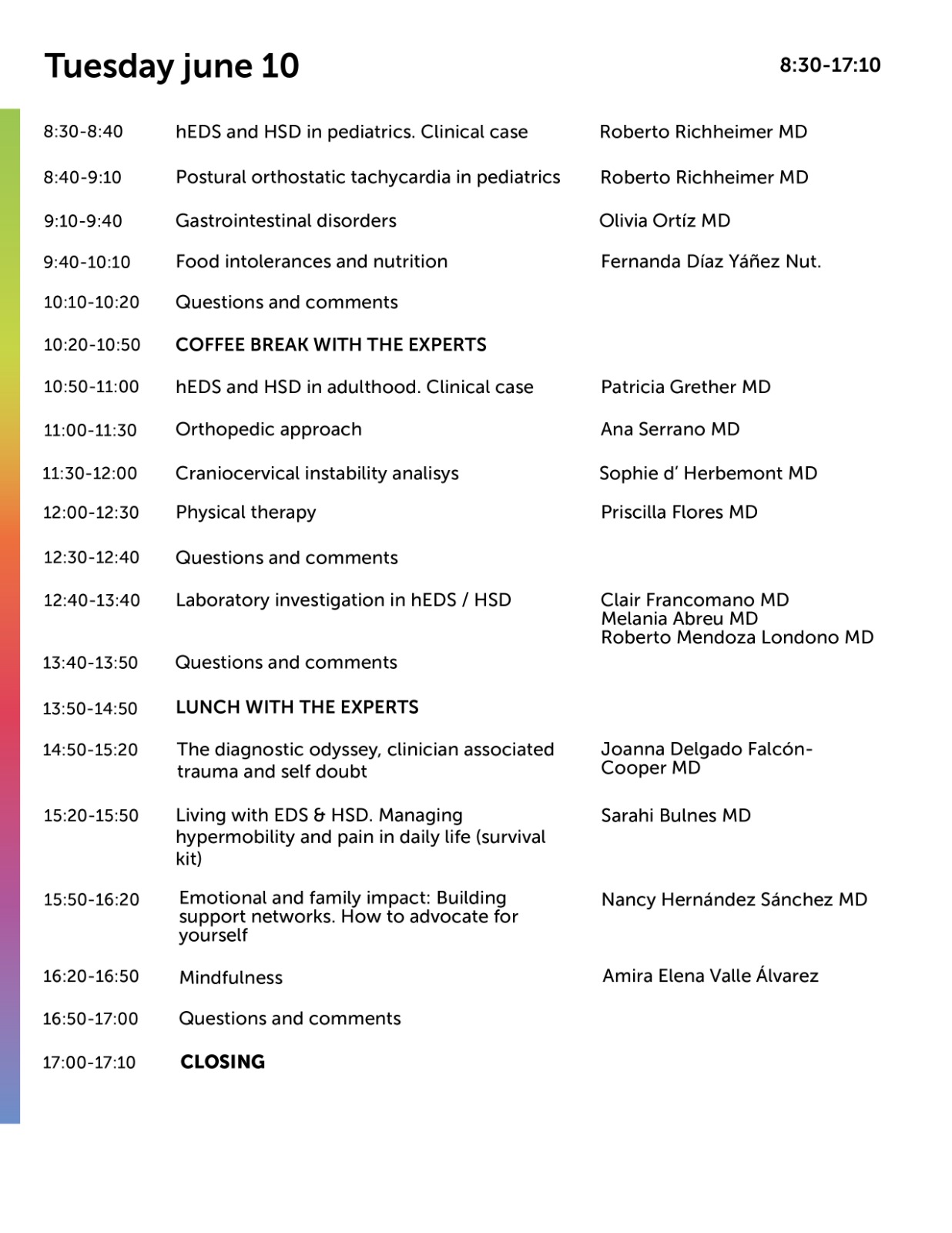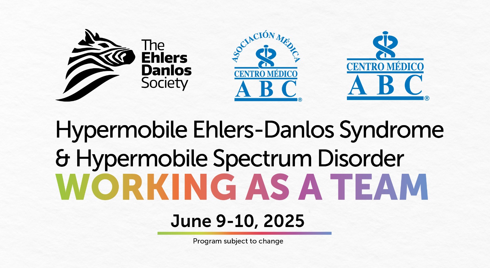 The ABC Medical Center, in collaboration with The Ehlers Danlos Society, is pleased to welcome you to the "Hypermobile Ehlers-Danlos Syndrome (hEDS) and Hypermobile Spectrum Disorder (HSD): Working as a Team" event, which will take place on June 9-10, 2025. The event will be delivered primarily in Spanish and will feature real-time translation into over 60 languages.